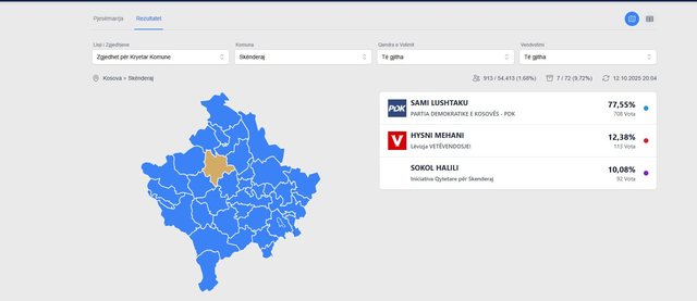 Pas tij vjen Hysni Mehani me 12,38%, si dhe Sokol Haliti nga “Iniciativa Qytetare për Skenderj” me 10,08%.