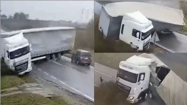 Sipas raportimeve, kamioni po lëvizte në një rrugë të lagur nga shiu kur shoferi, 54-vjeç, humbi kontrollin e mjetit.