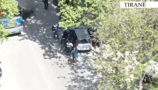 Policia ka publikuar edhe pamjet e aksionit, teksa i dyshuari ndiqet, rrethohet që të mos ketë mundësi arratisjeje dhe më pas shtrihet në asfalt dhe prangoset me duart pas shpine prej agjentëve.