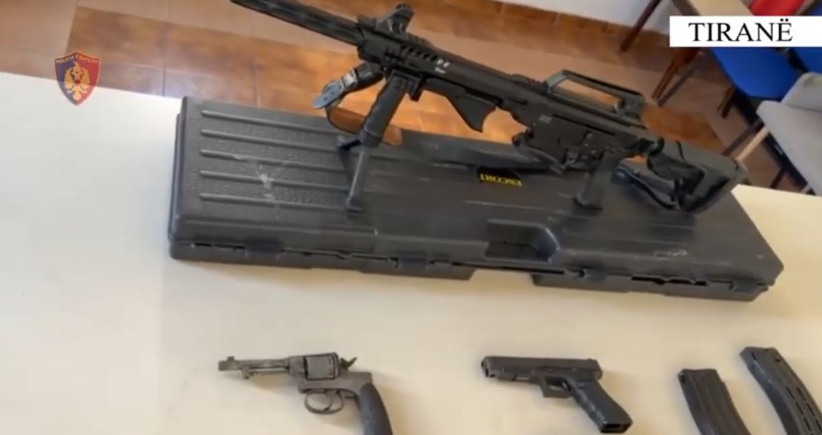 “Gjatë operacionit, u vu në pranga shtetasi L. M., 48 vjeç, banues në Tiranë. Ky shtetas u ndalua nga shërbimet e Policisë, në rrugën “Myslym Keta”, Tufinë, ndërkohë që lëvizte me automjetin e tij. Nga kontrollet në automjet, u gjetën 3 armë zjarri (2 pistoleta dhe 1 armë taktike luftarake), që dyshohet se ky shtetas i posedonte me qëllim shitjen në zonat “Fresku” dhe “Tufinë”, tha policia.