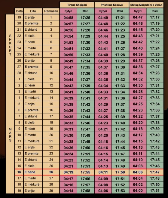 Kalendari i Ramazanit