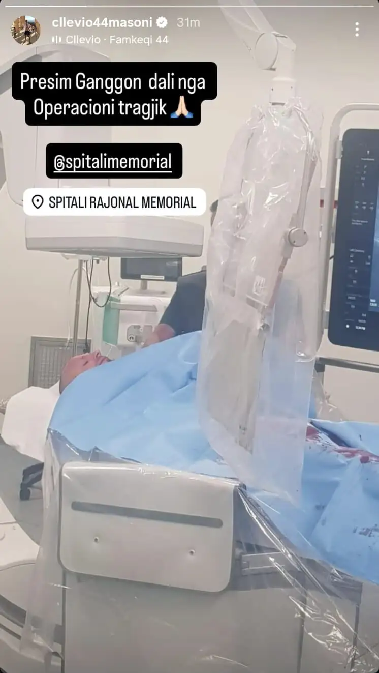 Në profilin e tij zyrtar në Instagram është publikuar një fotografi nga një ambient spitalor, ku shihet një person i shtrirë në sallën e ndërhyrjeve kirurgjikale. Postimi shoqërohet me një mbishkrim që ka tërhequr menjëherë vëmendjen: “Presim Ganggon dali nga operacioni tragjik”.
