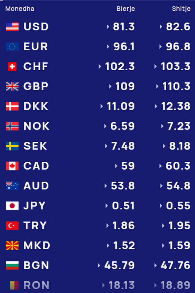 Më poshtë, po sjellim të dhënat e këmbimin valutor, për të gjitha monedhat e huaja: