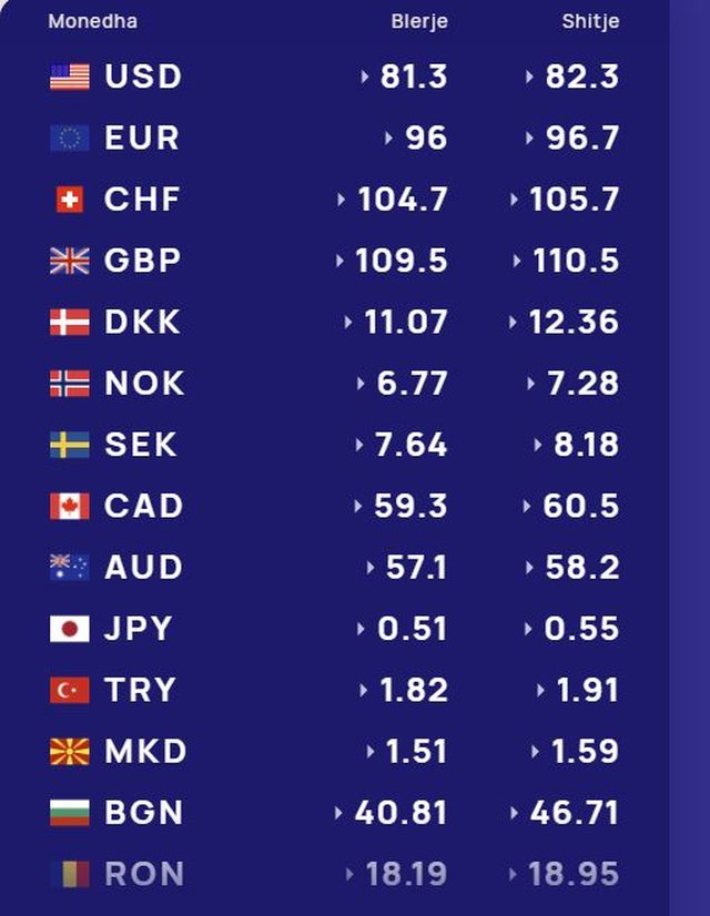Më poshtë, po sjellim të dhënat e këmbimin valutor, për të gjitha monedhat e huaja: