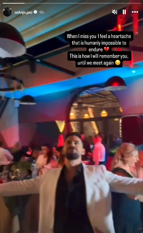 Në një InstaStory të publikuar, Selvije ka shprehur hapur dhimbjen e mungesës, duke lënë të kuptohet se plagët e humbjes janë ende shumë të freskëta. “Kur më mungon, ndiej një dhimbje zemre që është e pamundur të durohet”, shkruan ajo, fjalë që pasqyrojnë një boshllëk të madh shpirtëror dhe mall të pashuar.
