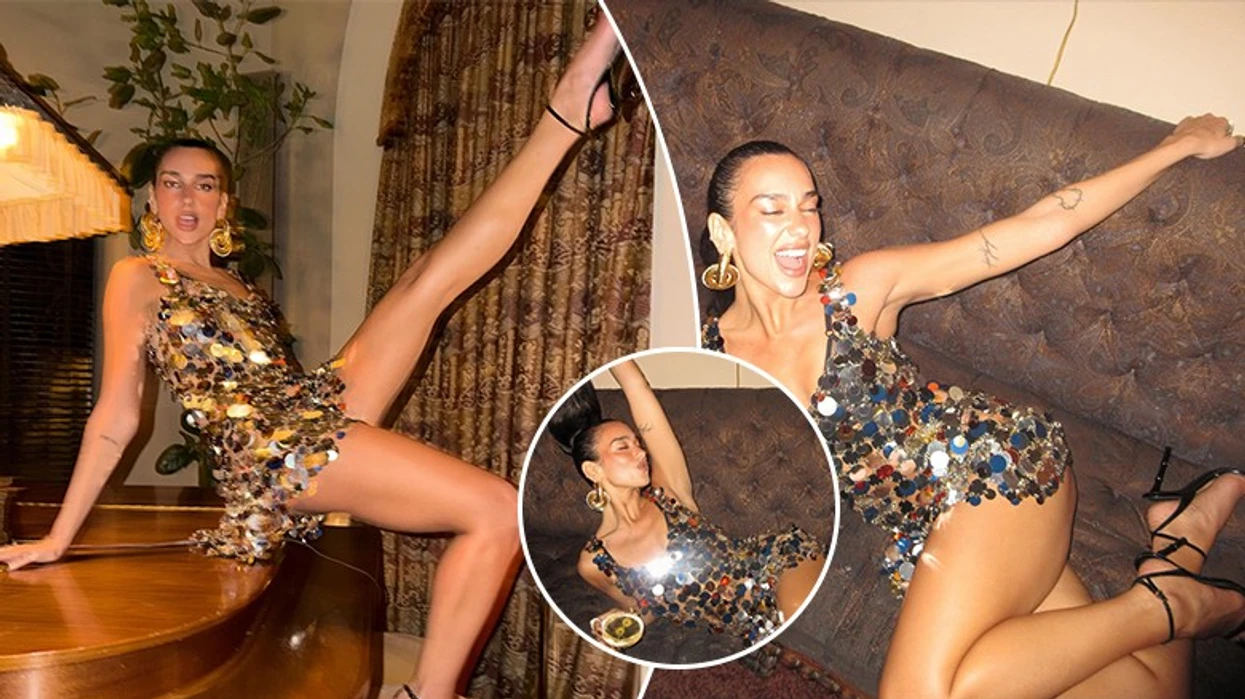 Në imazhet e publikuara, Dua shfaqet duke shkëlqyer me një fustan të shkurtër transparent të dekoruar me rrathë metalikë shumëngjyrësh që pasqyrojnë dritën, duke i dhënë një efekt glamuroz dhe festiv veshjes.