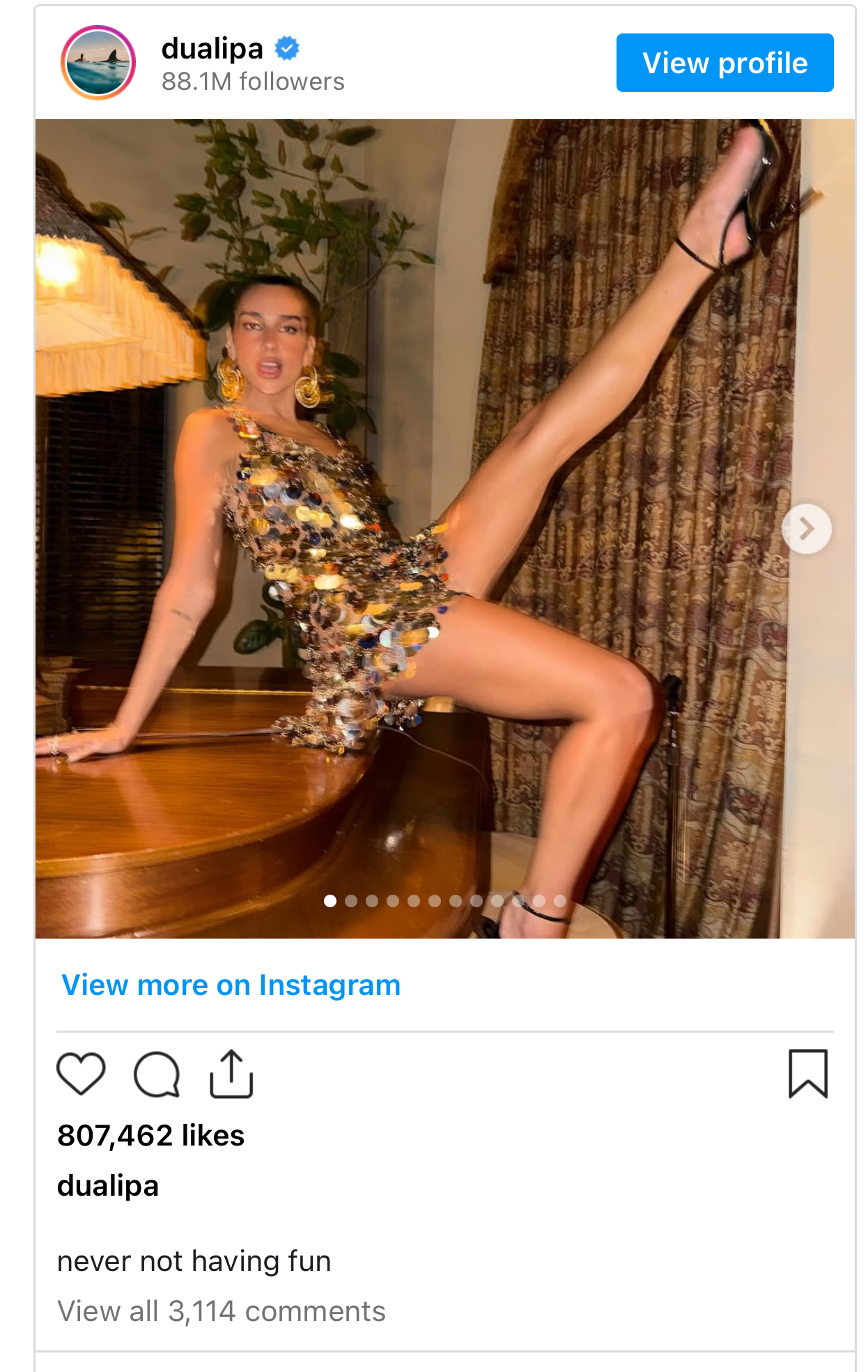 Ylli i pop-it ndërkombëtar, Dua Lipa, ka bërë sërish bujë në rrjetet sociale me disa fotografi mahnitëse që ndau së fundmi me ndjekësit e saj në Instagram.