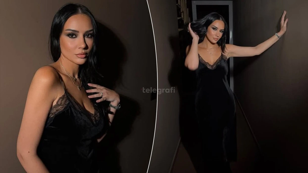 Në fotografitë e fundit të publikuara, Bora shfaqet me një fustan të zi sateni me detaje dantelle, i cili i thekson hijeshinë dhe finesën natyrale.