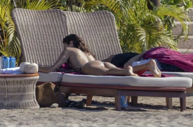 Të dy po bënin banjo dielli, me këngëtaren që në një moment u pa pa reçipeta, ndërsa në një moment tjetër u kapën duke u përqafuar dhe duke biseduar.