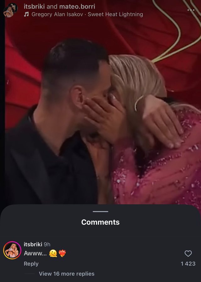 Por përveç puthjes, një tjetër detaj që tërhoqi vëmendje ishte reagimi nga jashtë. Në një video të shpërndarë online, llogaria zyrtare e Brikenës në Instagram publikoi një koment të shkurtër, por domethënës. Ky reagim u pëlqye dhe u shpërnda masivisht nga ndjekësit, duke u interpretuar si një shenjë mbështetjeje për lidhjen e re.
