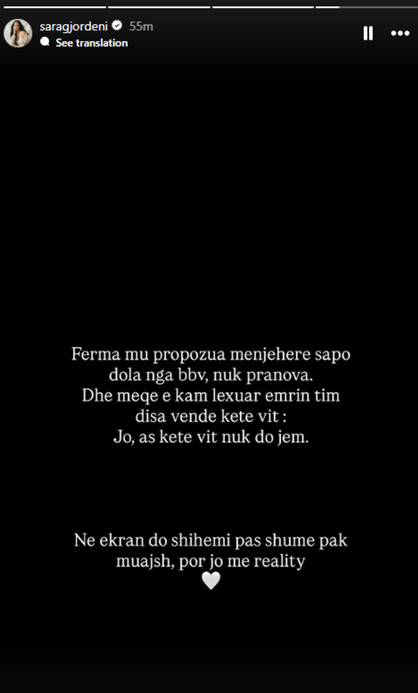 “Edhe pse emri im është përmendur disa herë si pjesëmarrëse e mundshme këtë vit, konfirmoj që nuk do të jem pjesë e spektaklit,” shkroi Sara, duke treguar qartësisht vendimin e saj. Në fund të mesazhit, ajo la të kuptohet se do të rikthehet në ekran, por me një format të ri: “Në ekran do të shihemi pas shumë pak muajsh, por jo me reality.”