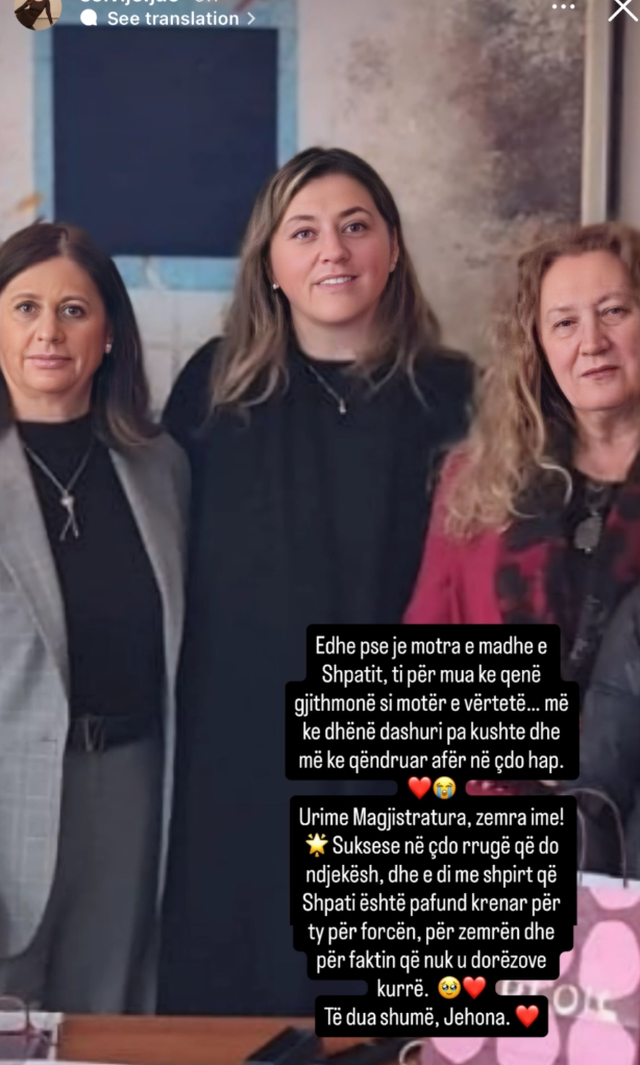 “Edhe pse je motra e madhe e Shpatit, ti për mua ke qenë gjithmonë si motër e vërtetë… më ke dhënë dashuri pa kushte dhe më ke qëndruar përkrah në çdo hap!