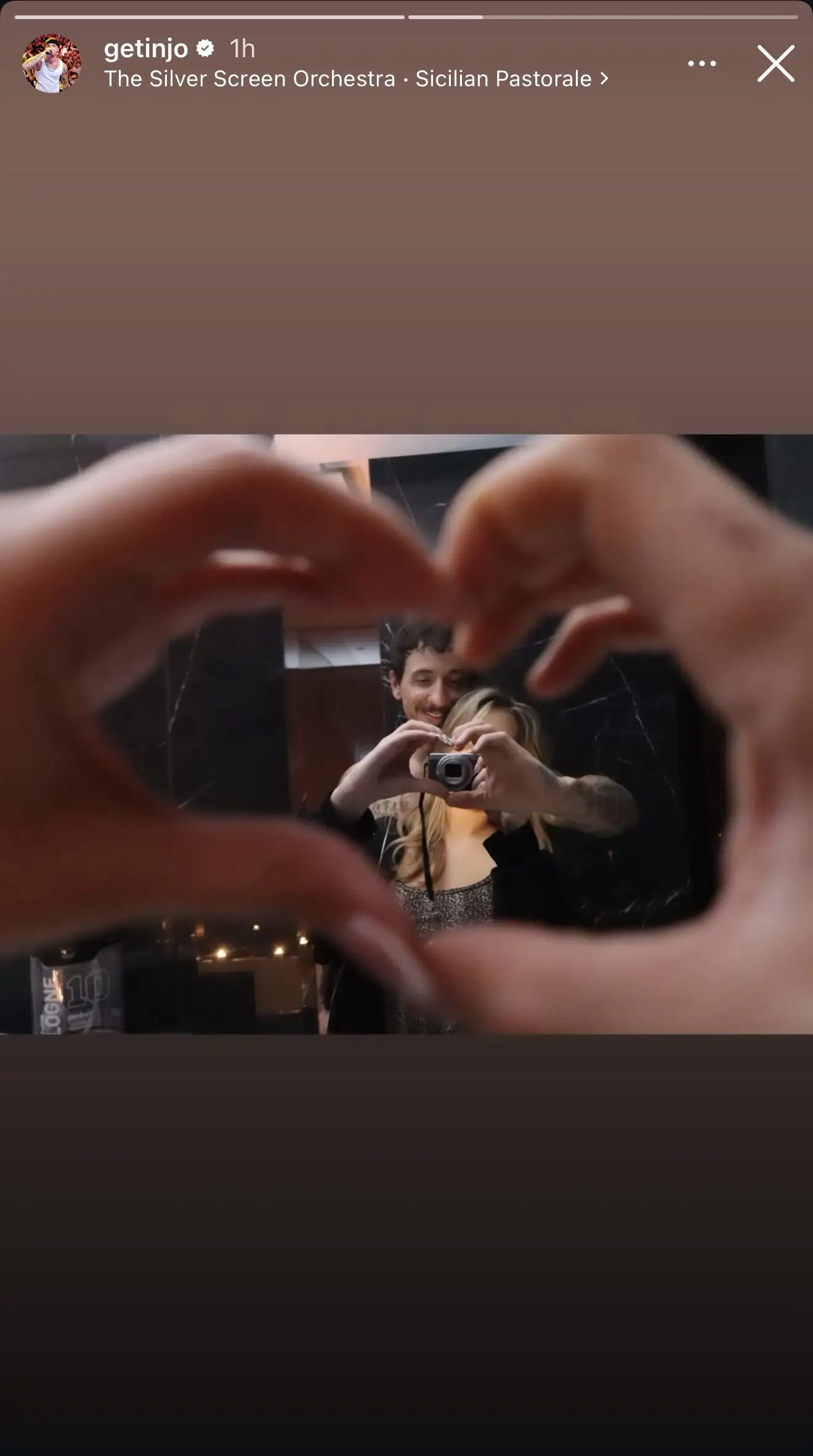 Në imazhin e publikuar, Getinjo shfaqet përballë pasqyrës, i përqafuar me një vajzë misterioze. Të dy formojnë simbolin e zemrës me duar, një gjest që lë të kuptohet për një lidhje të re sentimentale. Megjithatë, identiteti i vajzës mbetet ende i panjohur, pasi ajo ka zgjedhur të qëndrojë jashtë fokusit të drejtpërdrejtë të kamerës.