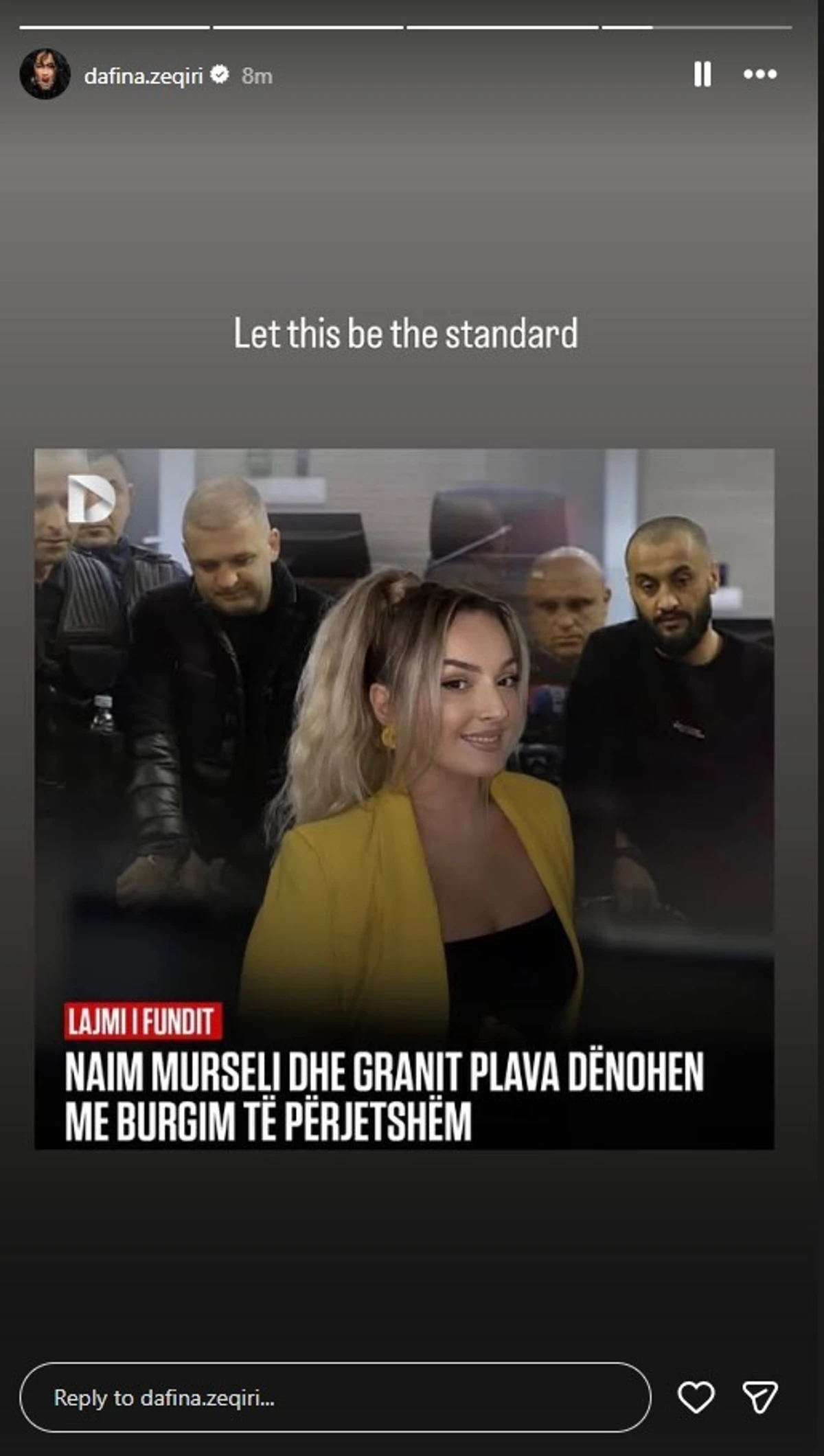 Ajo në postim në InstaStory shkroi: “Le të jetë ku standardi”.