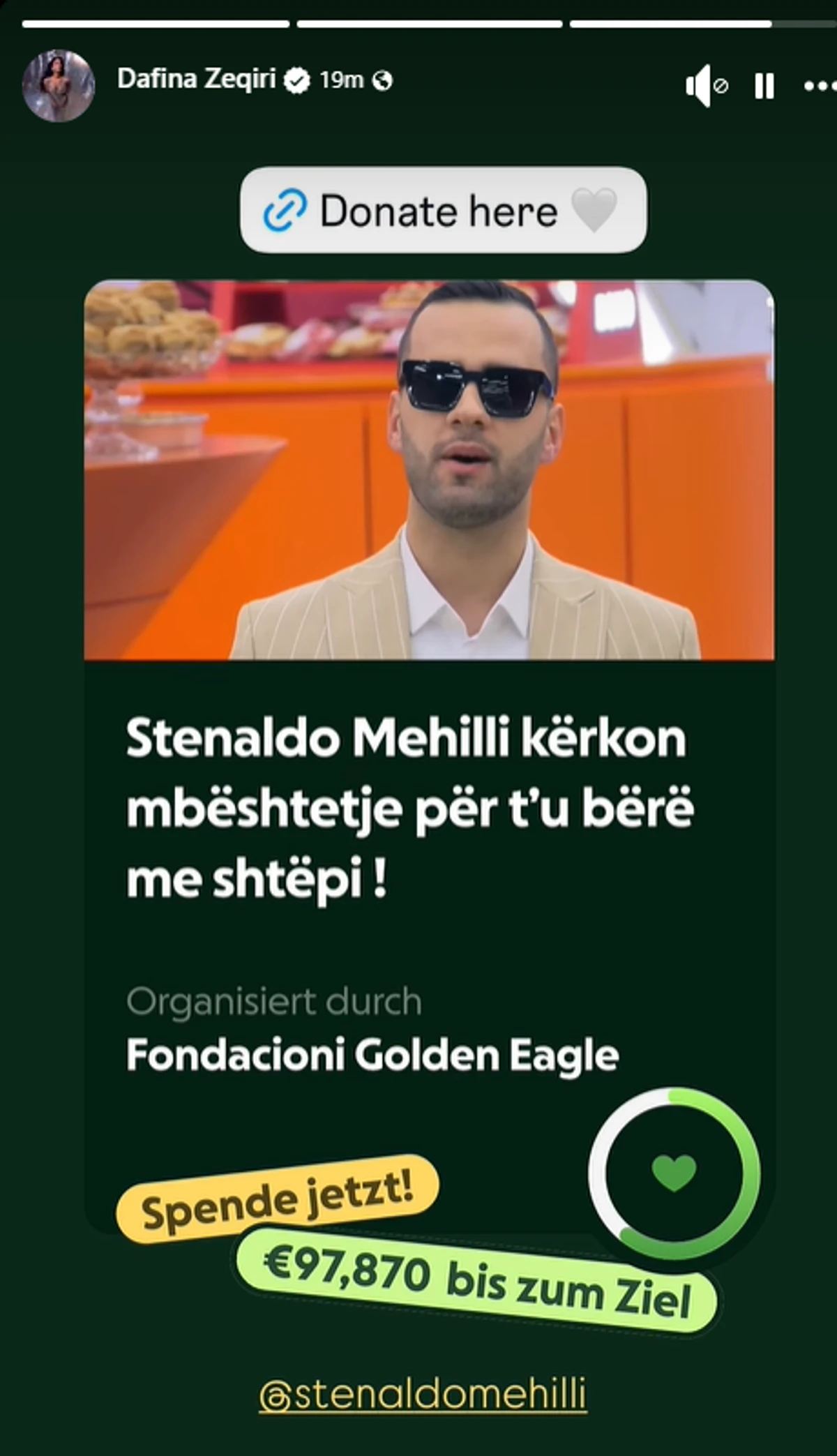 Është hapur një fushatë në platformën GoFundMe për të mbështetur Stenaldo Mëhillin, ish-banorin e Big Brother VIP Albania, i cili po përballet me vështirësi ekonomike.