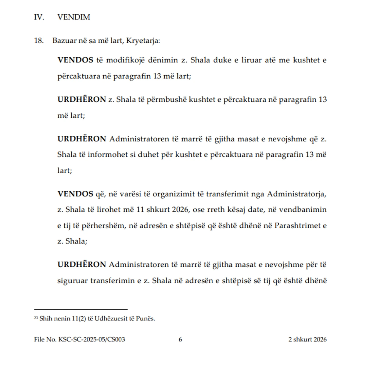 Pas këtij vendimi, Haxhi Shala u lirua dhe u kthye në Kosovë më 10 shkurt 2026.