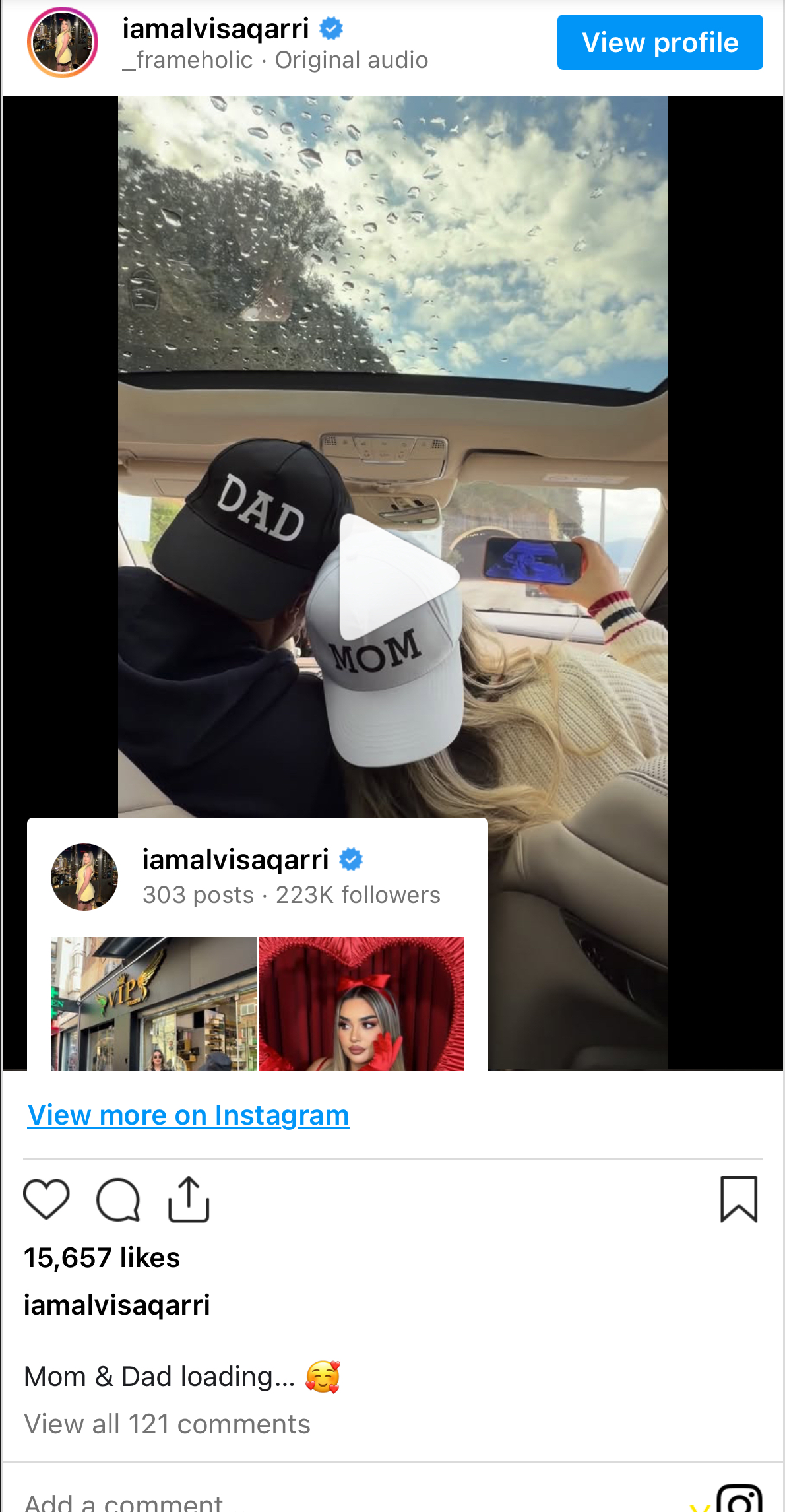 Ajo ka ndarë me ndjekësit një moment shumë të veçantë përmes një postimi në Instagram. Në foto ajo shfaqet në makinë pranë partnerit të saj, ndërsa të dy mbajnë kapele ku shkruhet “MOM” dhe “DAD”. Në dorë shihet edhe një telefon ku shfaqet ekografia e bebit, duke konfirmuar kështu lajmin e bukur për ardhjen e një anëtari të ri në familje.