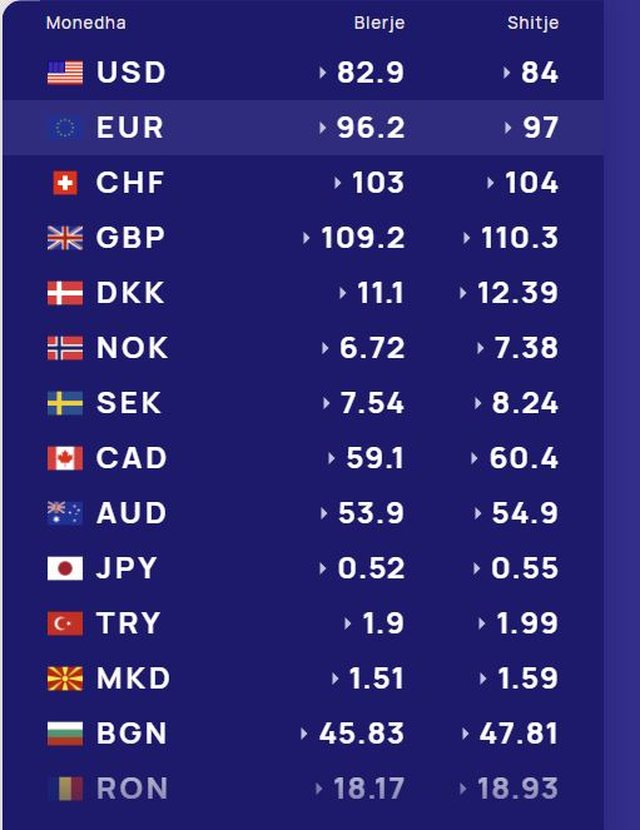Më poshtë, po sjellim të dhënat e këmbimin valutor, për të gjitha monedhat e huaja: