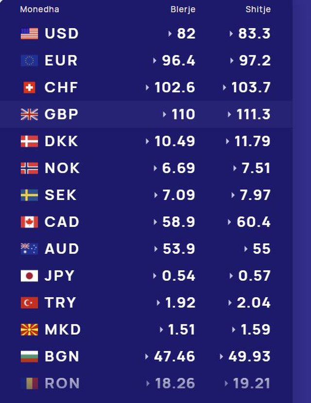 Më poshtë, po sjellim të dhënat e këmbimin valutor, për të gjitha monedhat e huaja: