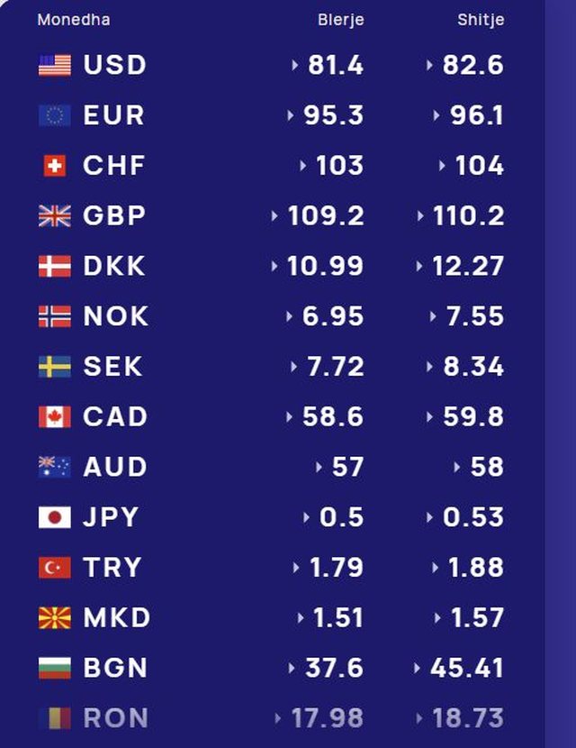 Më poshtë, po sjellim të dhënat e këmbimin valutor, për të gjitha monedhat e huaja: