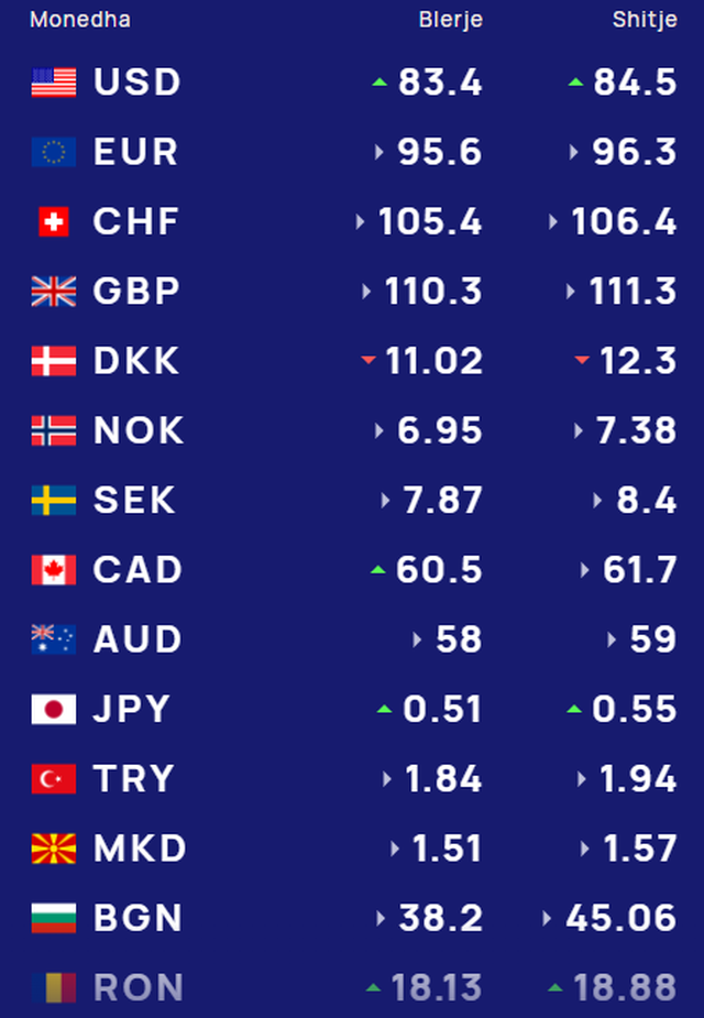 Më poshtë, po sjellim të dhënat e këmbimin valutor, për të gjitha monedhat e huaja: