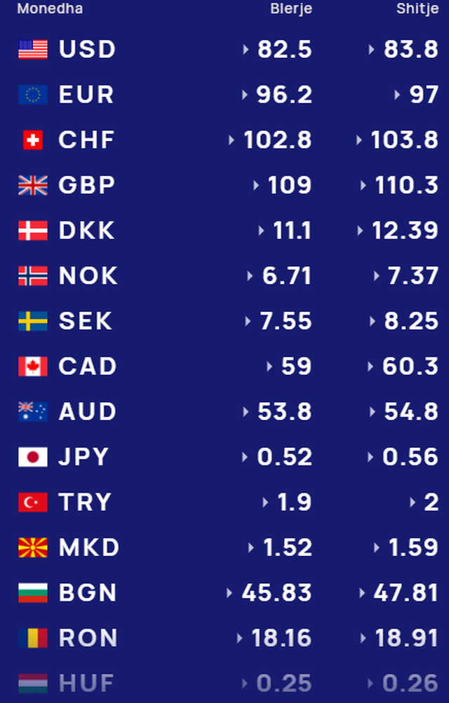 Më poshtë, po sjellim të dhënat e këmbimin valutor, për të gjitha monedhat e huaja: