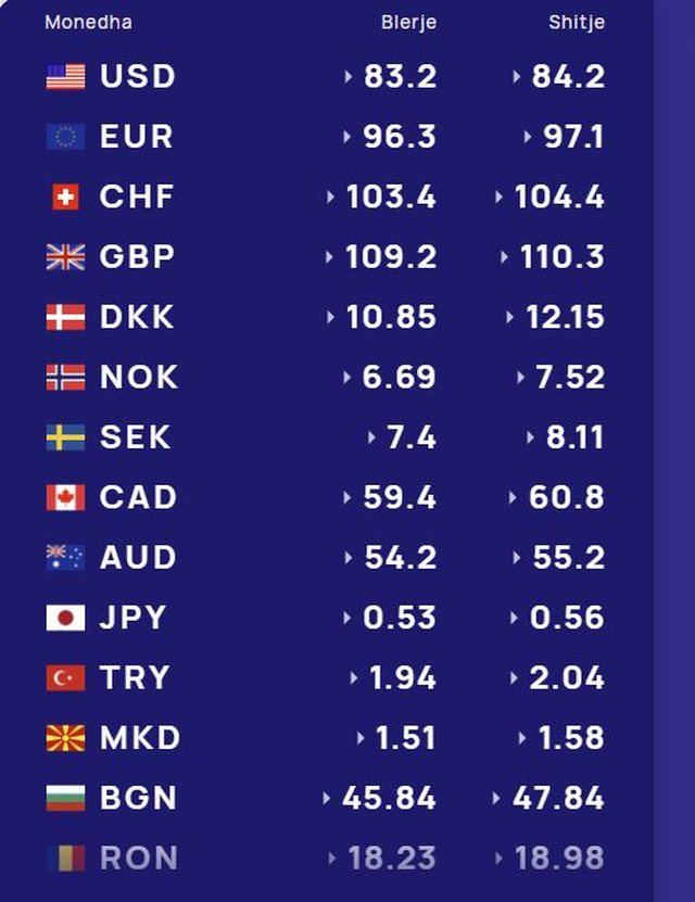 Më poshtë, po sjellim të dhënat e këmbimin valutor, për të gjitha monedhat e huaja: