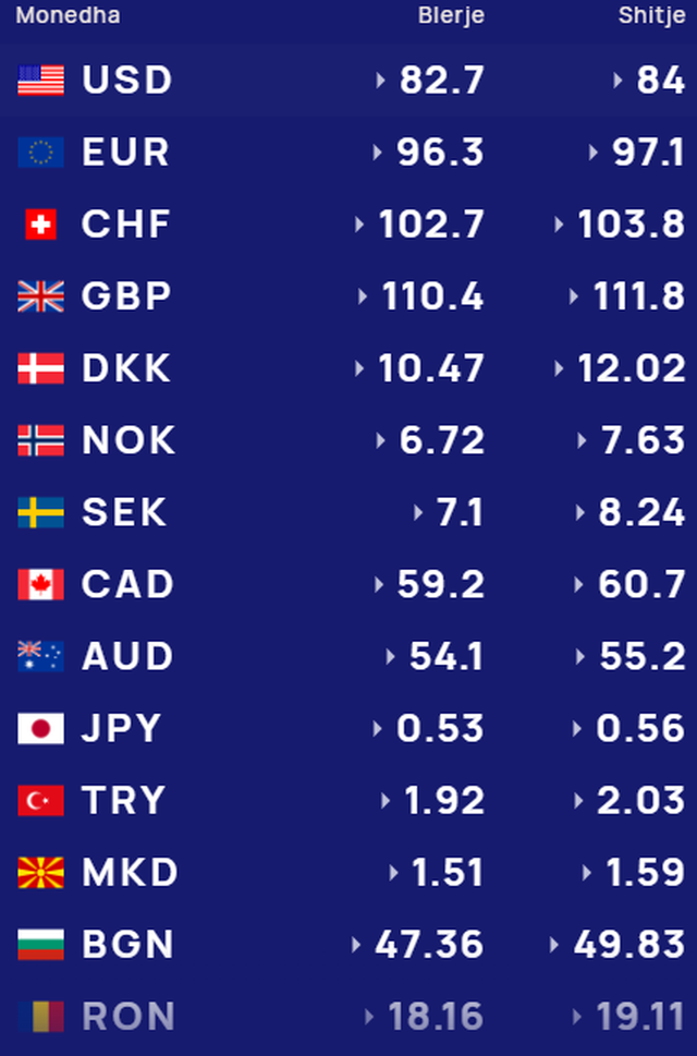 Më poshtë, po sjellim të dhënat e këmbimin valutor, për të gjitha monedhat e huaja: