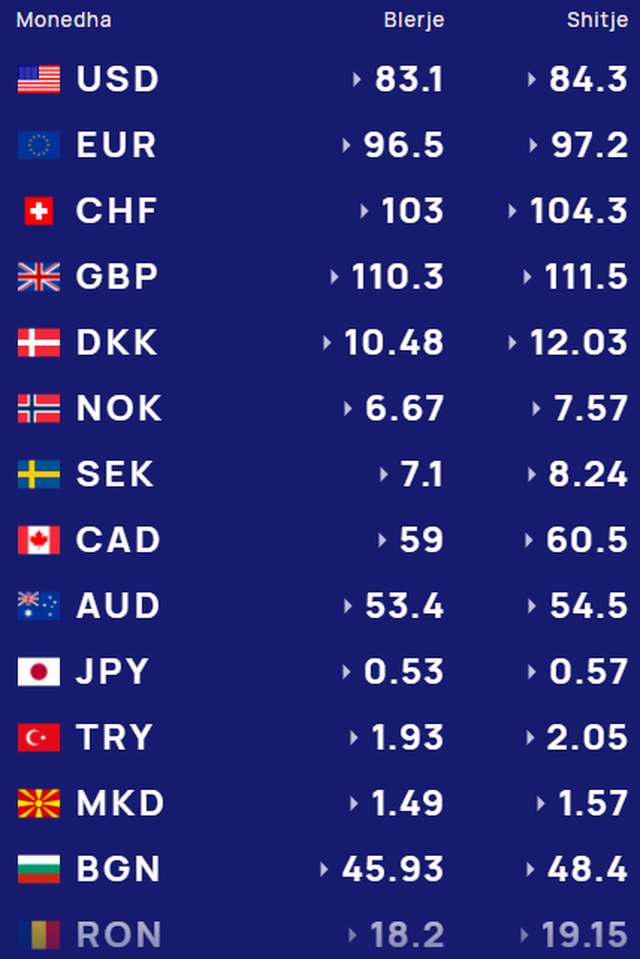 Më poshtë, po sjellim të dhënat e këmbimin valutor, për të gjitha monedhat e huaja: