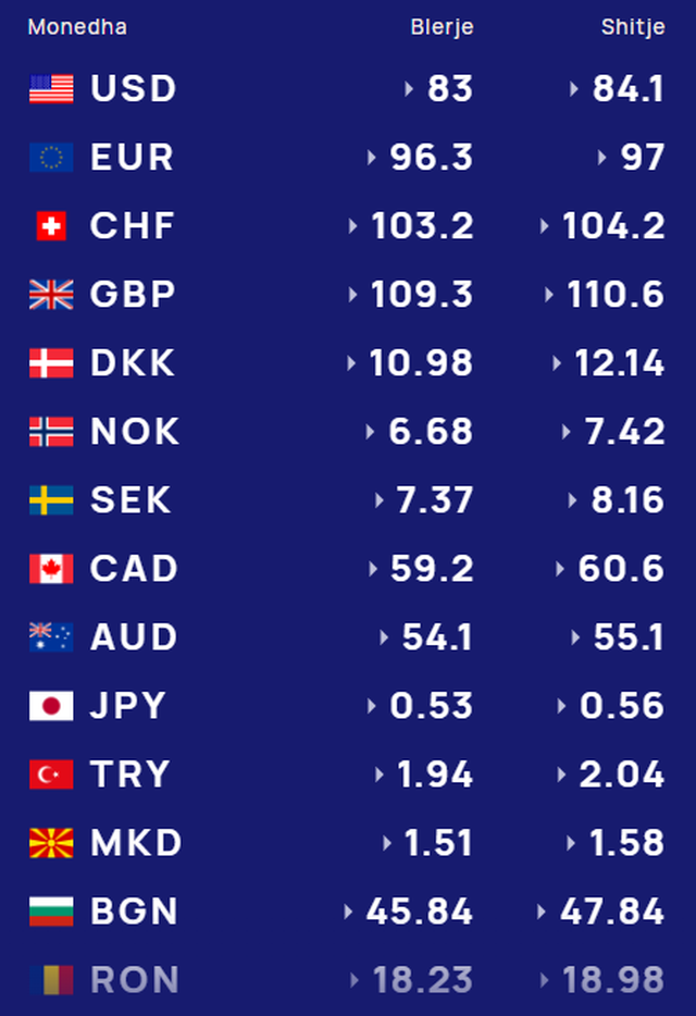 Më poshtë, po sjellim të dhënat e këmbimin valutor, për të gjitha monedhat e huaja: