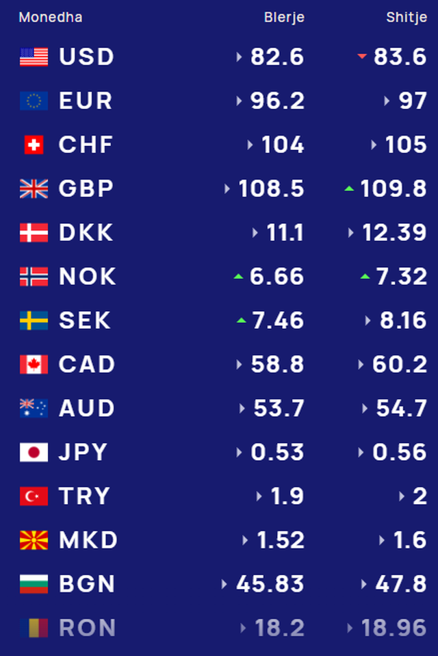 Më poshtë, po sjellim të dhënat e këmbimin valutor, për të gjitha monedhat e huaja: