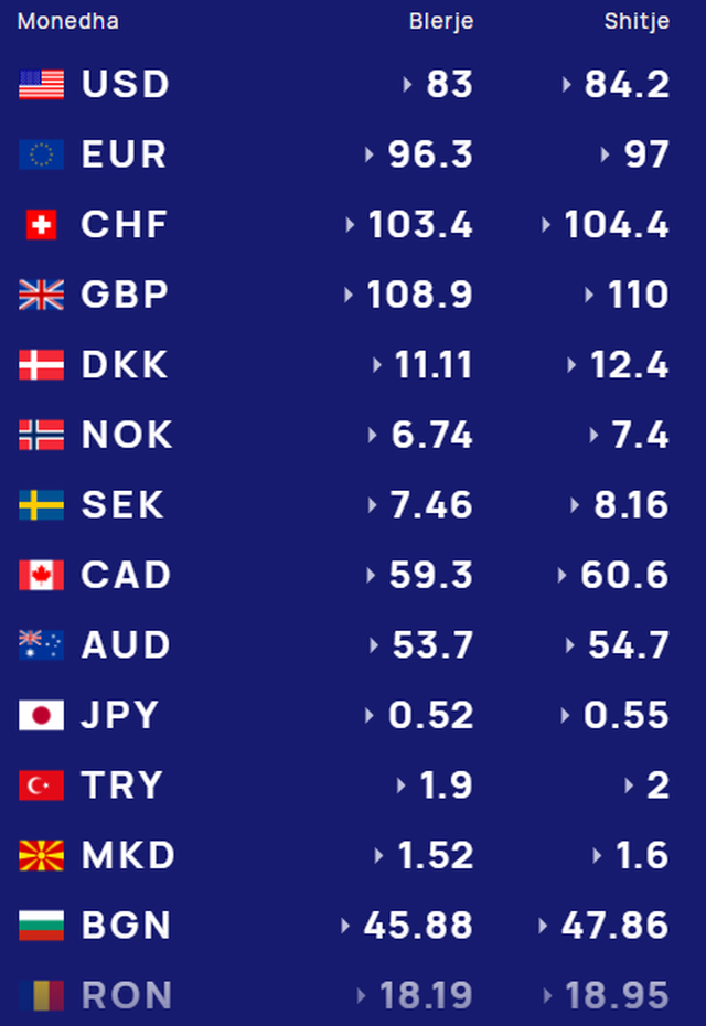 Më poshtë, po sjellim të dhënat e këmbimin valutor, për të gjitha monedhat e huaja: