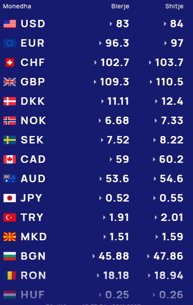 Më poshtë, po sjellim të dhënat e këmbimin valutor, për të gjitha monedhat e huaja: