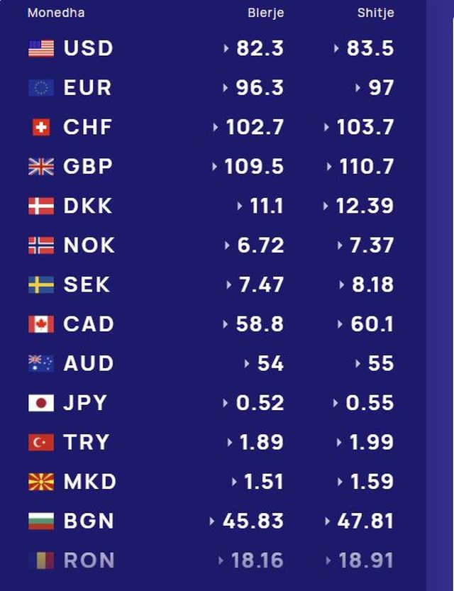 Më poshtë, po sjellim të dhënat e këmbimin valutor, për të gjitha monedhat e huaja: