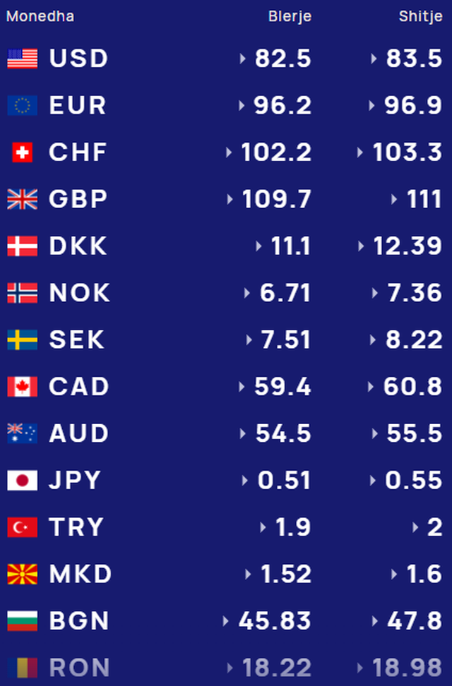 Më poshtë, po sjellim të dhënat e këmbimin valutor, për të gjitha monedhat e huaja: