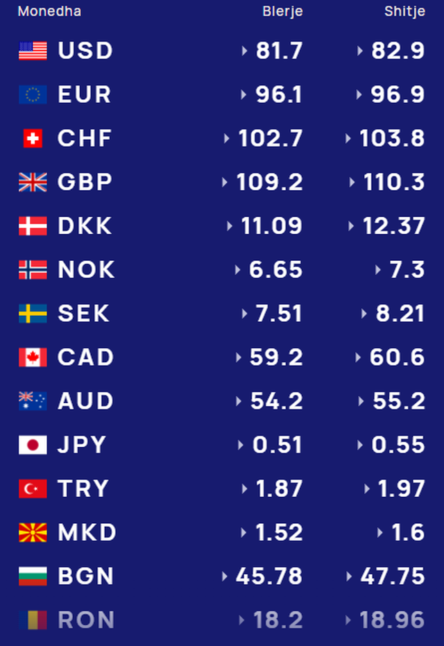 Euro, do të blihet me 96.1 lekë, do të shitet me 96.9 lekë.