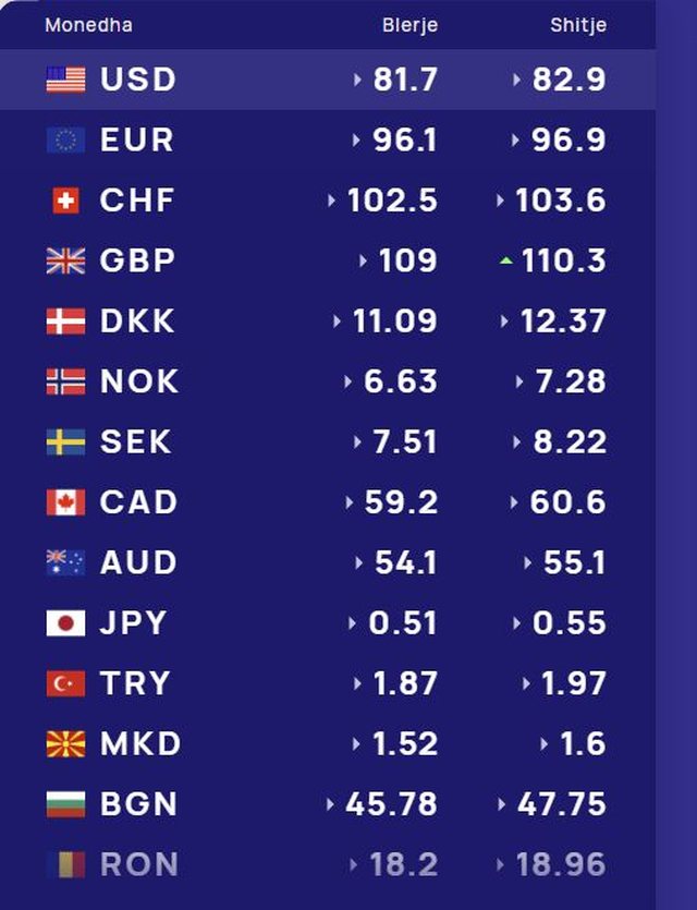 Më poshtë, po sjellim të dhënat e këmbimin valutor, për të gjitha monedhat e huaja: