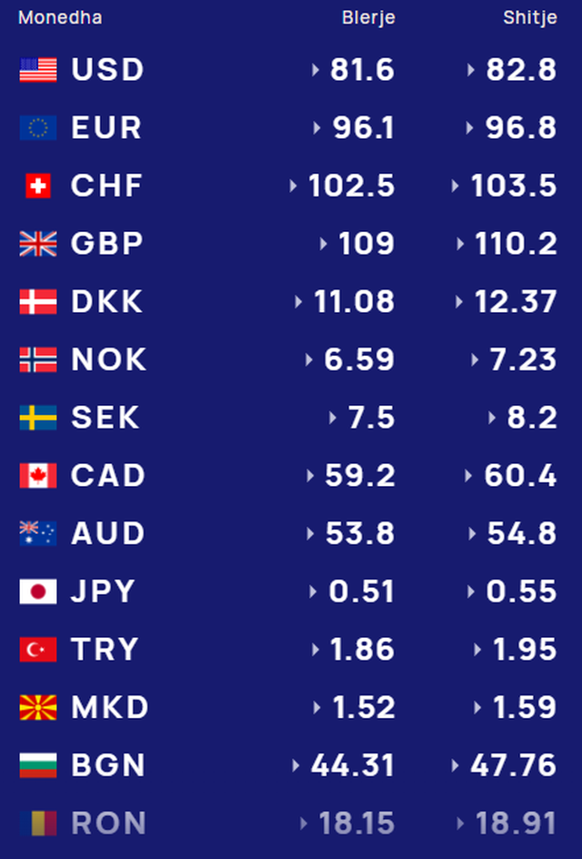 Më poshtë, po sjellim të dhënat e këmbimin valutor, për të gjitha monedhat e huaja: