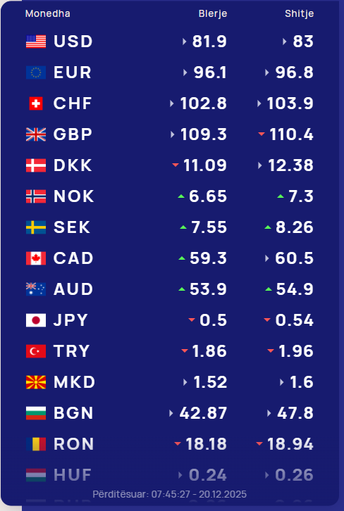 Më poshtë, po sjellim të dhënat e këmbimin valutor, për të gjitha monedhat e huaja: