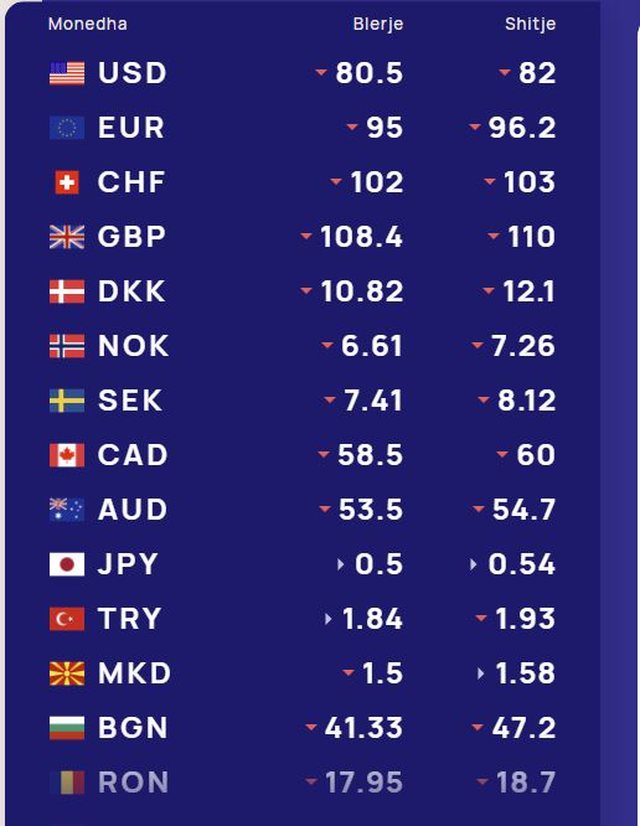 Më poshtë, po sjellim të dhënat e këmbimin valutor, për të gjitha monedhat e huaja: