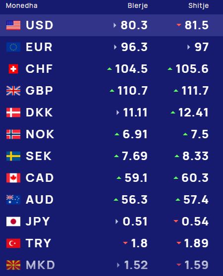 Më poshtë, po sjellim të dhënat e këmbimin valutor, për të gjitha monedhat e huaja: