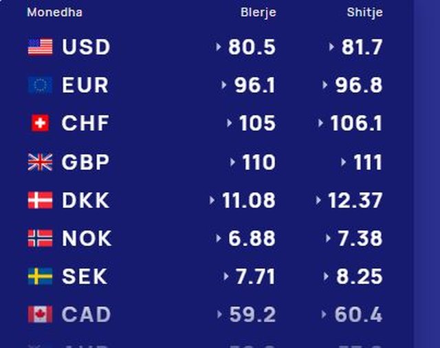 Më poshtë, po sjellim të dhënat e këmbimin valutor, për të gjitha monedhat e huaja: