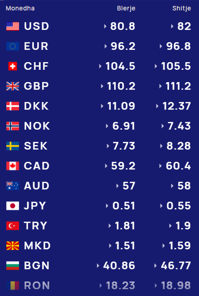 Më poshtë, po sjellim të dhënat e këmbimin valutor, për të gjitha monedhat e huaja: