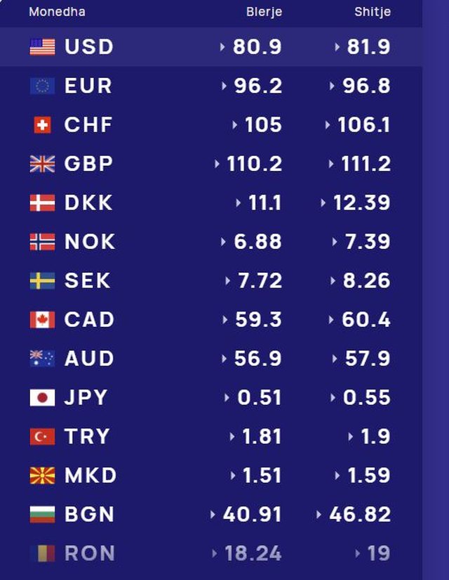 Më poshtë, po sjellim të dhënat e këmbimin valutor, për të gjitha monedhat e huaja:
