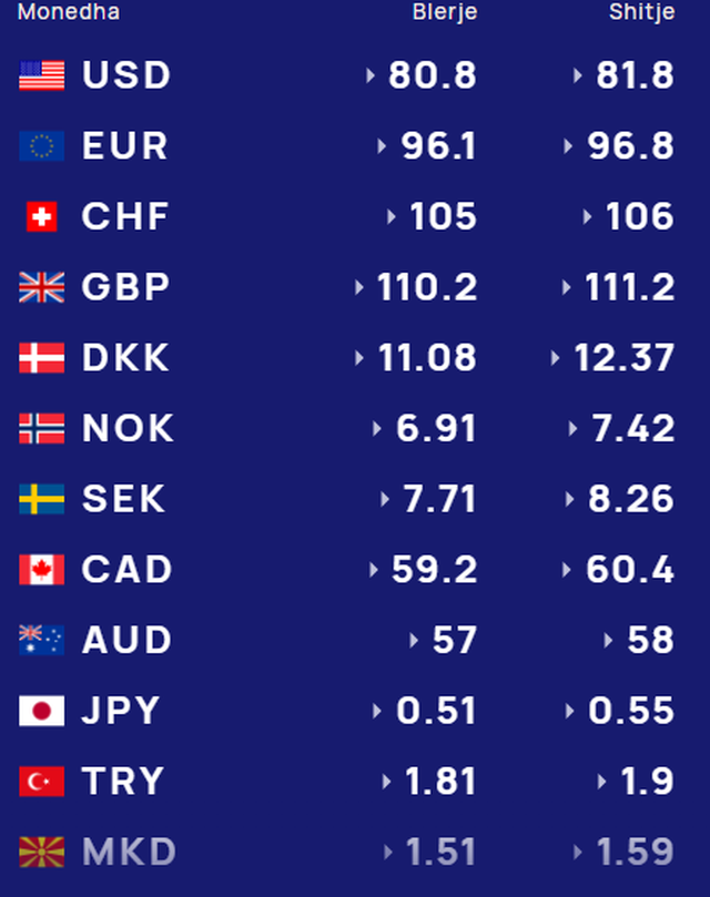 Më poshtë, po sjellim të dhënat e këmbimin valutor, për të gjitha monedhat e huaja: