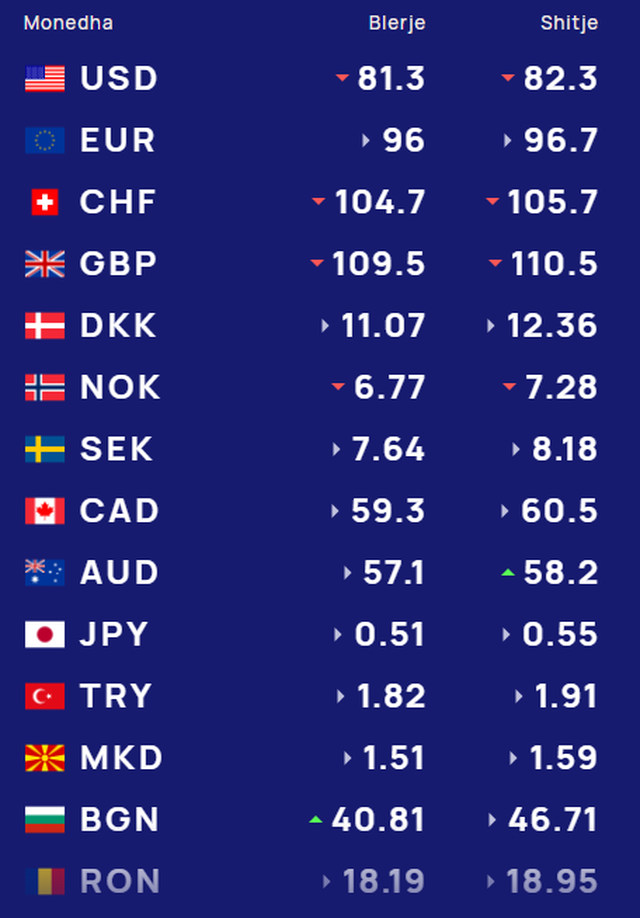 Më poshtë, po sjellim të dhënat e këmbimin valutor, për të gjitha monedhat e huaja: