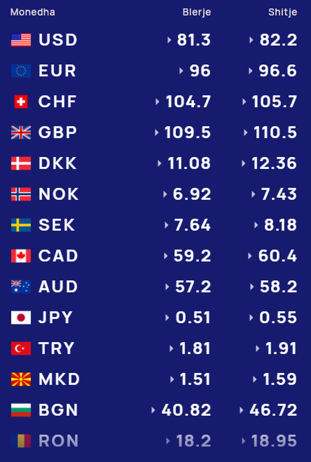 Më poshtë, po sjellim të dhënat e këmbimin valutor, për të gjitha monedhat e huaja: