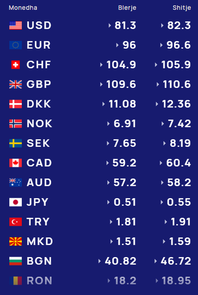 Më poshtë, po sjellim të dhënat e këmbimin valutor, për të gjitha monedhat e huaja:
