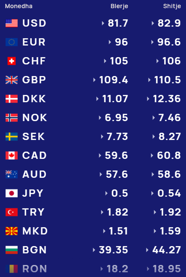Më poshtë, po sjellim të dhënat e këmbimin valutor, për të gjitha monedhat e huaja: