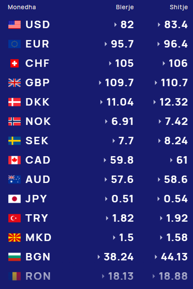 Më poshtë, po sjellim të dhënat e këmbimin valutor, për të gjitha monedhat e huaja:
